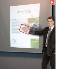 Der Anwender kann somit komfortabel zwischen den Folien wechseln und hat zu jeder Zeit beide Hände frei, da das Bedienen einer Fernbedienung entfällt.
